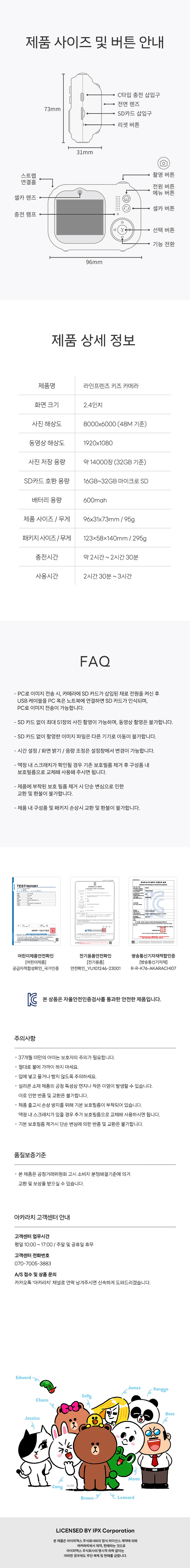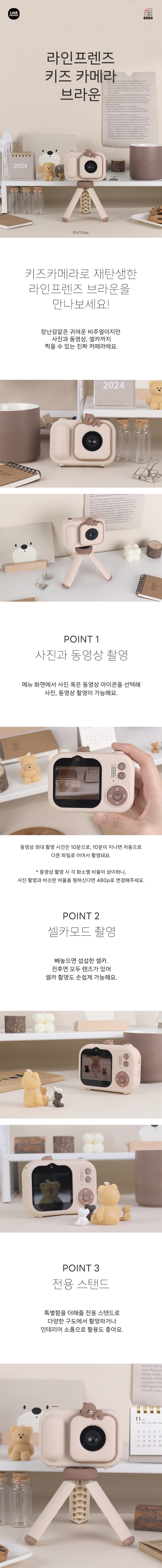 애니모어 아카라치 라인프렌즈 키즈 카메라 브라운