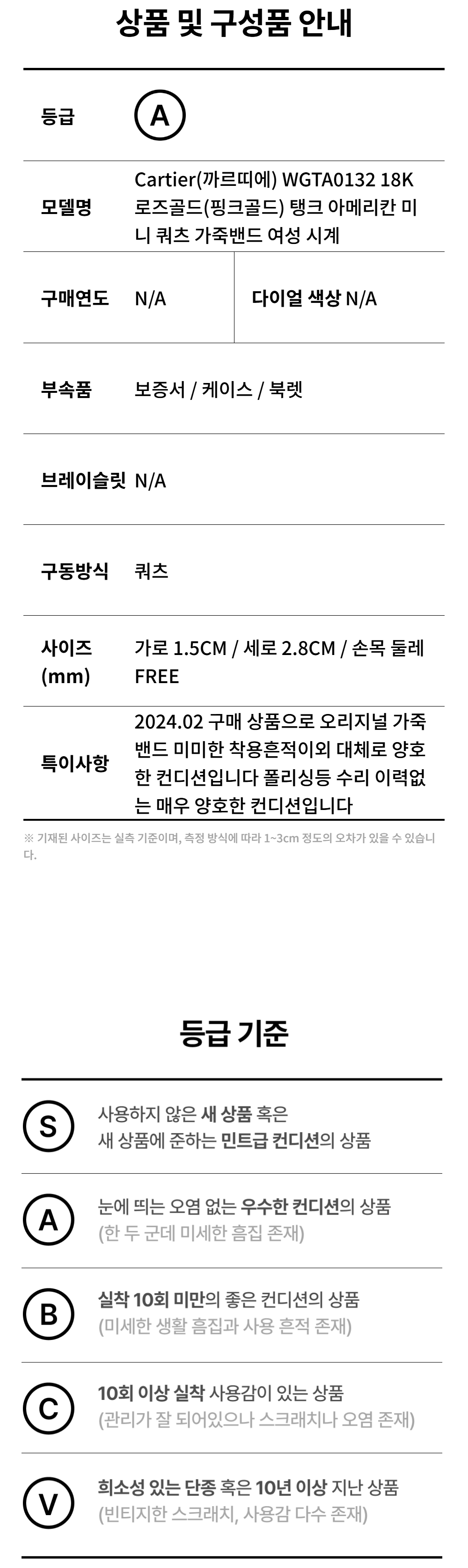 까르띠에 WGTA0132(WGTA0341) 18K로즈골드 탱크 아메리칸 미니 쿼츠 가죽밴드 여성 시계aa59390