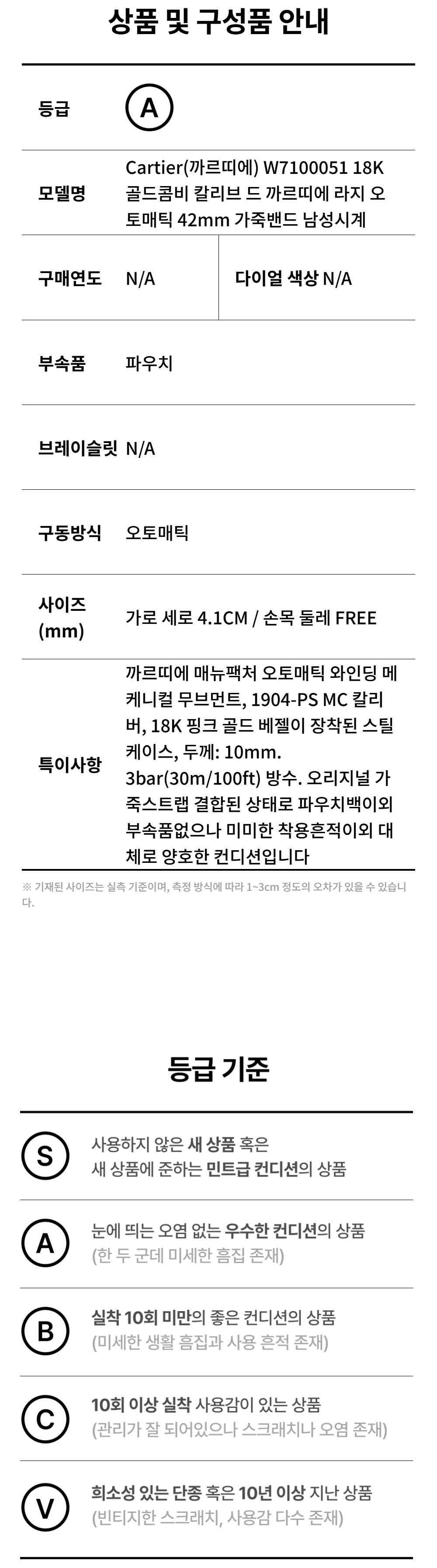 까르띠에 W7100051 18K골드콤비 칼리브 드 까르띠에 라지 오토매틱 42mm 가죽밴드 남성시계aa54683