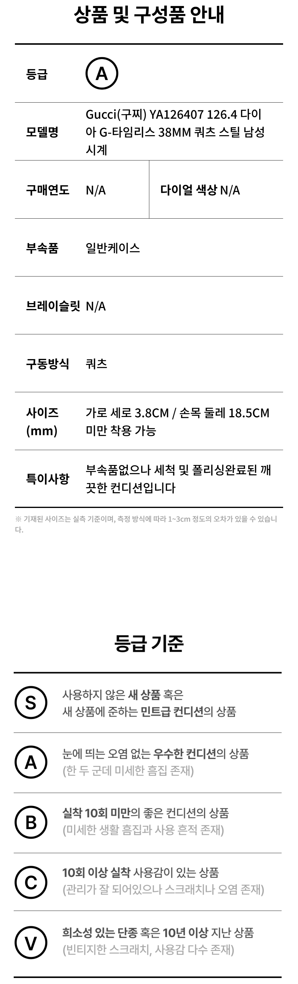 구찌 YA126407 126.4 다이아 G-타임리스 38MM 쿼츠 스틸 남성 시계