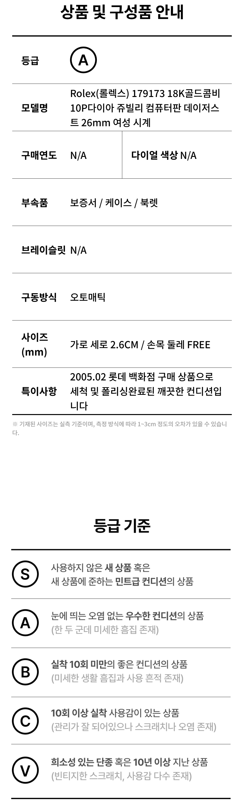 롤렉스 179173 18K골드콤비 10P다이아 쥬빌리 컴퓨터판 데이저스트 26mm 여성 시계aa57722