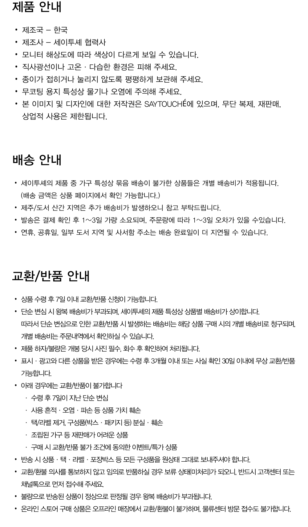 교환 및 반품 안내