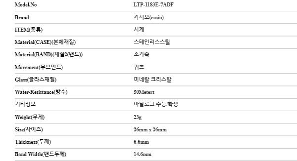 [15% 쿠폰] Casio LTP-1183E-7ADF