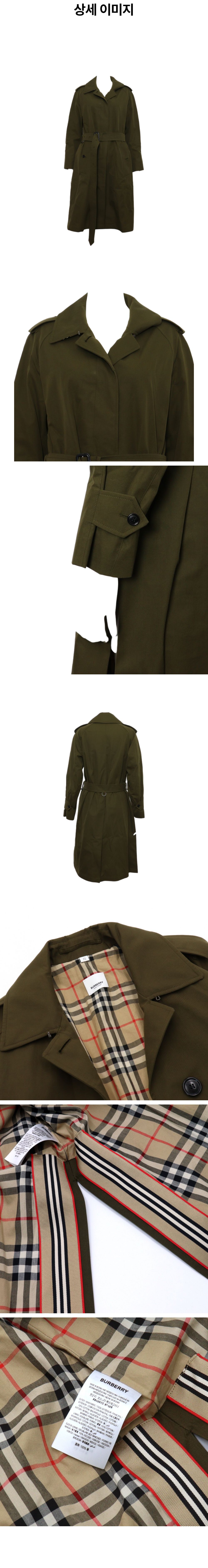 버버리 8014397 카키 컬러 체크 트렌치 여성 카 코트 자켓aa59865