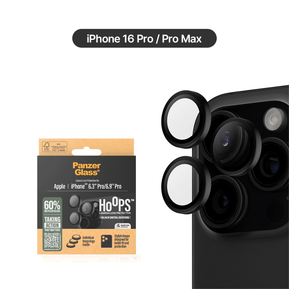 판저글래스 훕스 카메라 보호 메탈링 아이폰 16/16플러스(블랙)