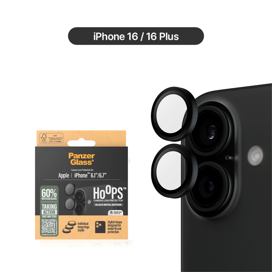 PANZERGLASS Hoops Camera Protection Metal Ring for iPhone 16 / 16 Plus (Black)