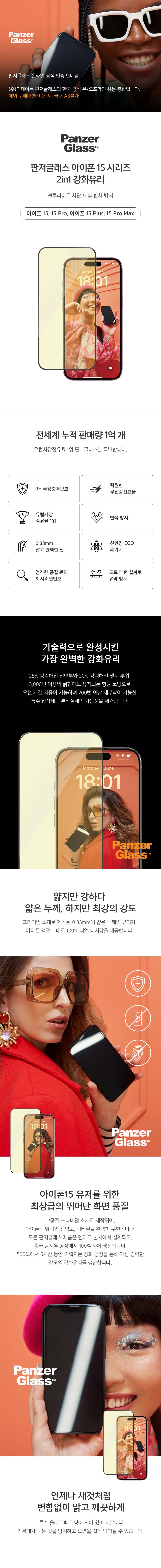 판저글래스 2in1 아이케어 강화유리 아이폰 15 시리즈