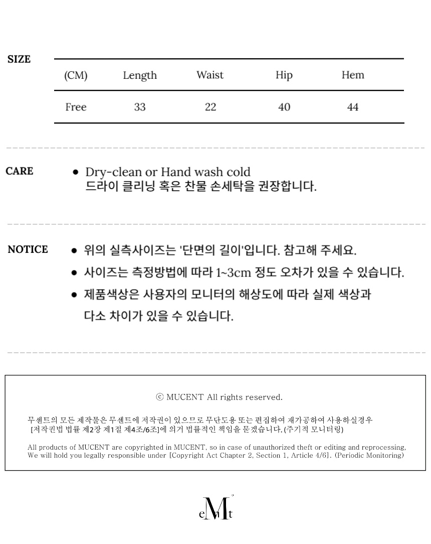 ┃Detail • 전면부 무센트 호피 십자가 로고 포인트 • 볼륨감 있는 실루엣 • 허리 밴딩으로 편안한 착용감 • 팬츠 위에 레이어드하여 유니크한 스타일 연출 • 풍성한 셔링으로 페미닌한 무드 연출 • 코디에 포인트를 주기 좋은 아이템 ┃Material : Polyester 100% ┃Care : Dry cleaning - 무센트는 말기의 행성인 이 지구에서 지속 가능한 옷들을 고민합니다. 우리는 신념을 소비하는 미닝아웃을 지지합니다.