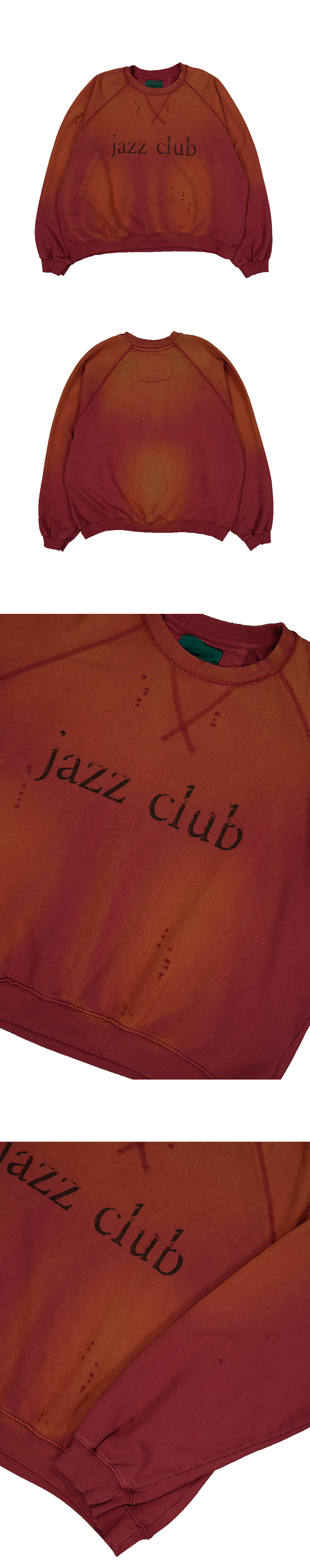 빈티지한 버건디 컬러 바디에 ‘째즈클럽’ 레터링을 더한 빈티지 무드의 맨투맨입니다. Model spec - 178cm / 70kg - Size 2 착용