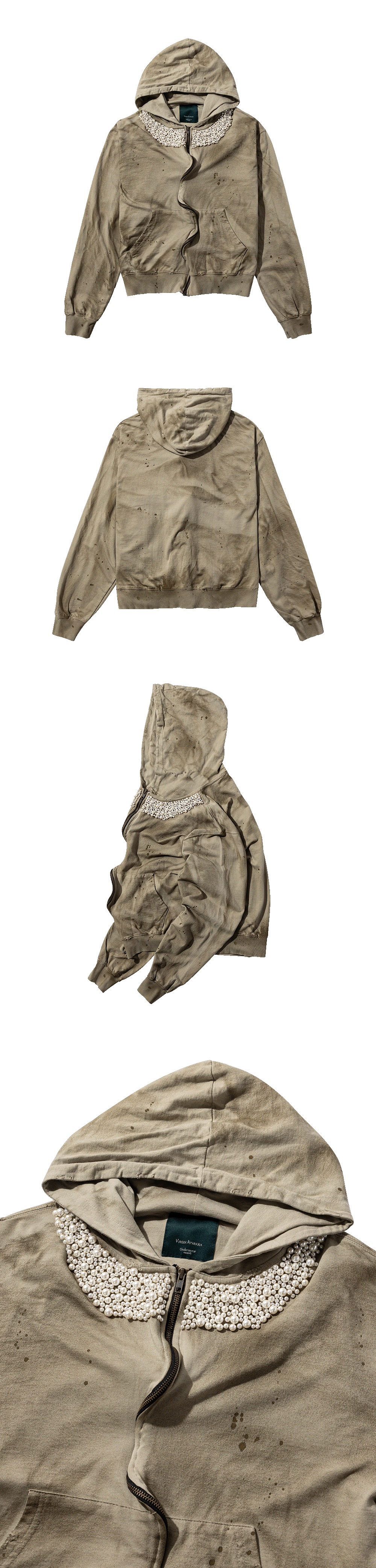 Undermycar Elegance In Rags Zipped Hoodie White Pearl