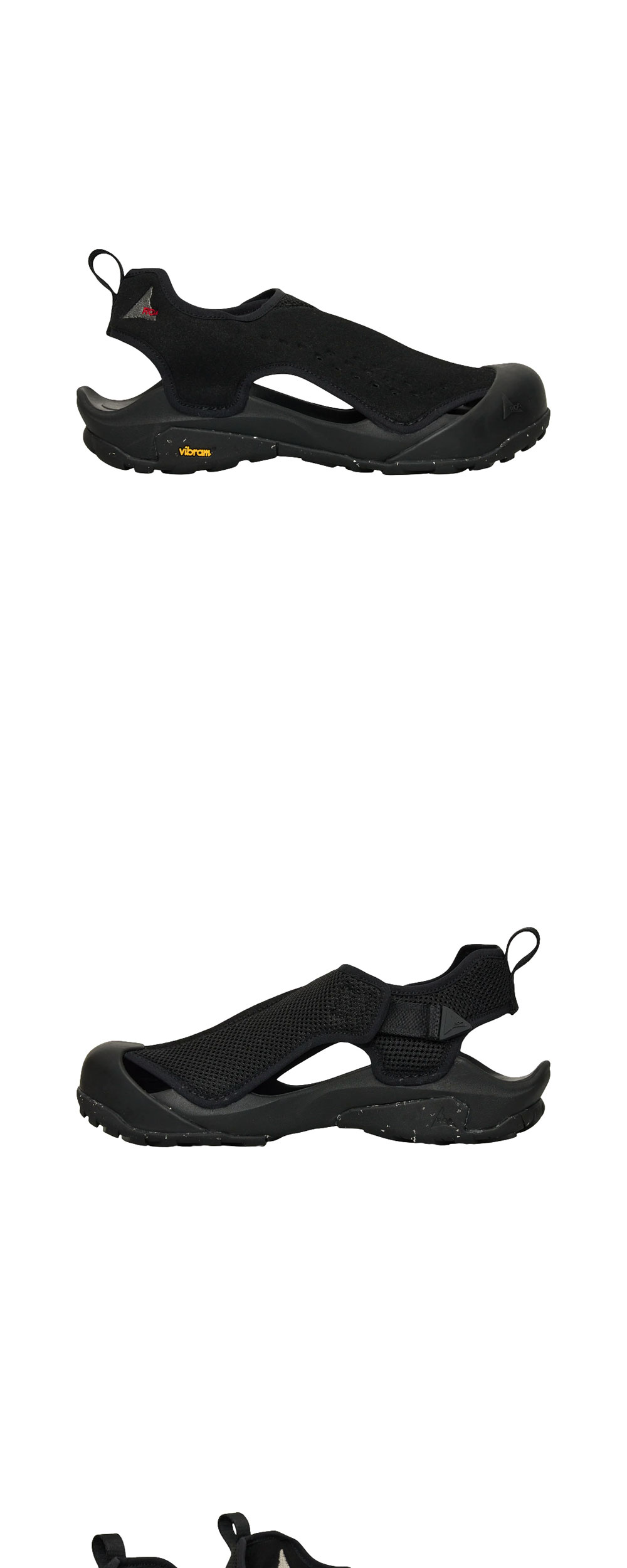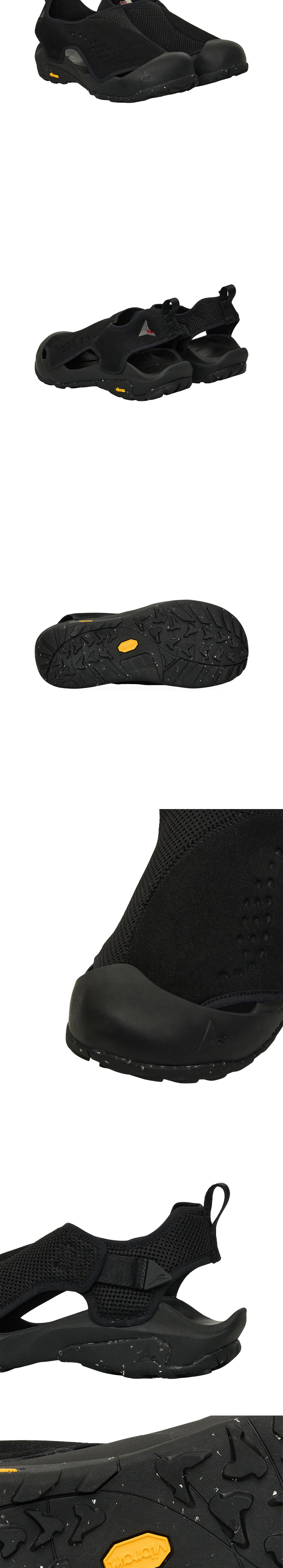 로아 알피 블랙입니다. - 오픈 메쉬와 마이크로파이버의 결합으로 통기성과 내구성 확보 - 히든 벨크로 클로저 시스템을 통한 깔끔한 외관과 안정적인 고정 - 견고한 러버 토 컵 디테일로 거친 지형으로부터 발가락 보호 - EVA 미드솔과 비브람 에코스텝 솔로 최상의 쿠셔닝 및 접지력 제공