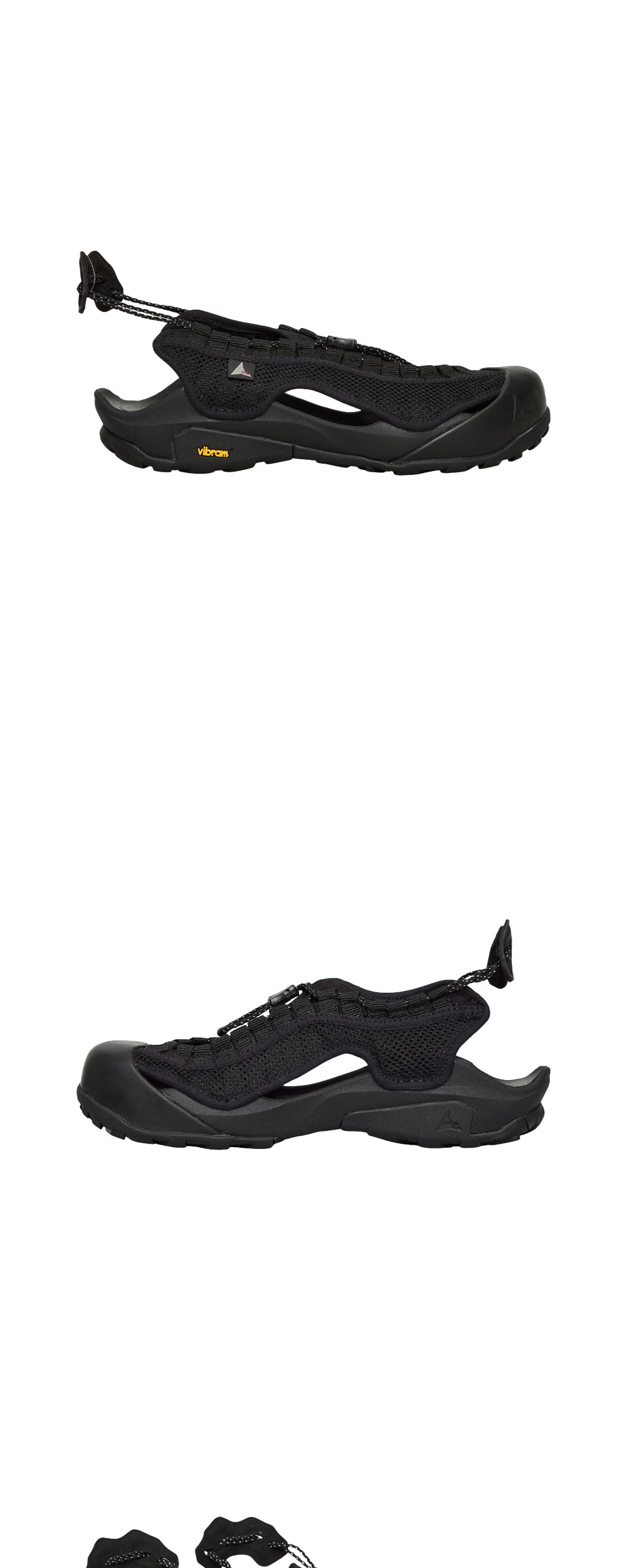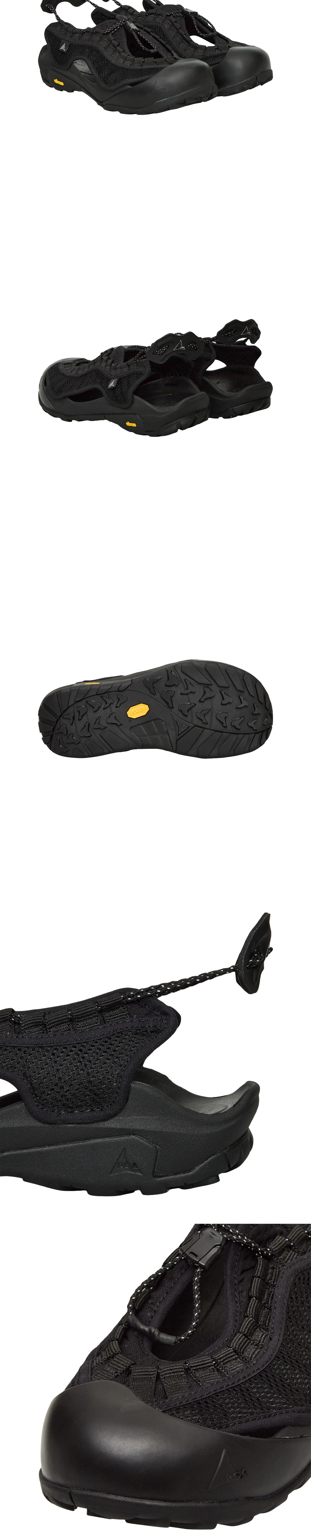 로아 알피 위브드 블랙입니다. - 오픈 메쉬와 웨빙 구조로 가벼운 무게와 최상의 통기성 구현 - 히든 벨크로 클로저를 적용하여 견고하고 안정적인 고정력 확보 - 러버 토 컵으로 발가락을 보호하며 힐 풀러로 편리한 착탈 지원 - 비브람 에코스텝 솔과 EVA 미드솔로 지속 가능한 접지력 제공