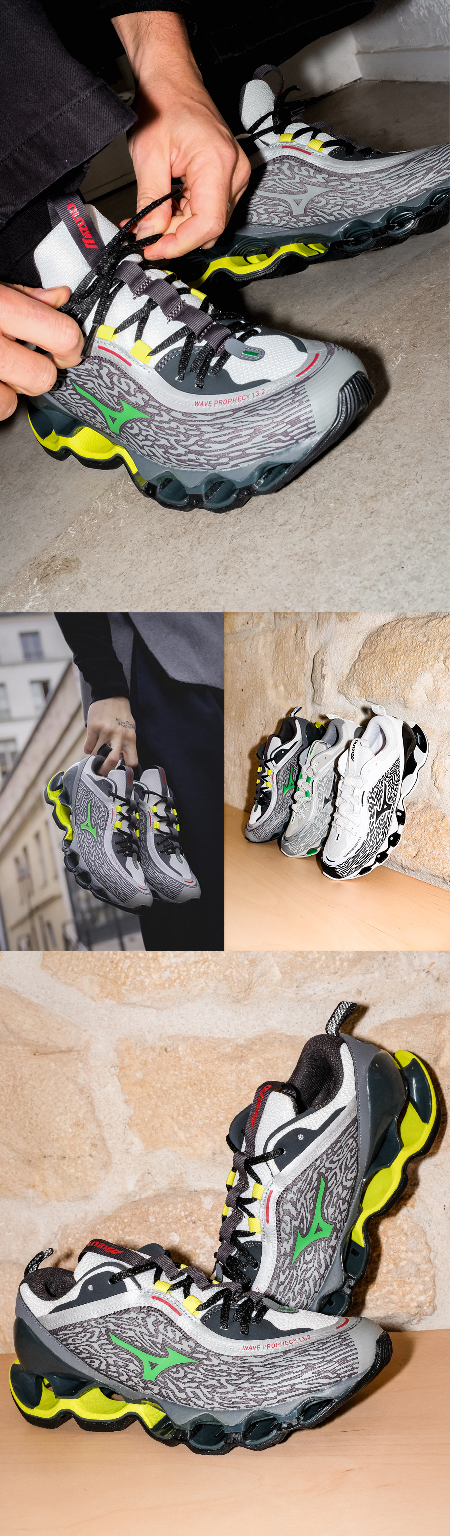 WAVE PROPHECY 13을 기반으로 미즈노의 혁신적인 디자인에 스트릿 무드를 더해 새롭게 탄생한 모델로 텅, 힐 카운터, 로고 디테일을 재설계하여 완성한 새로운 무드의 스포츠스타일화입니다.
