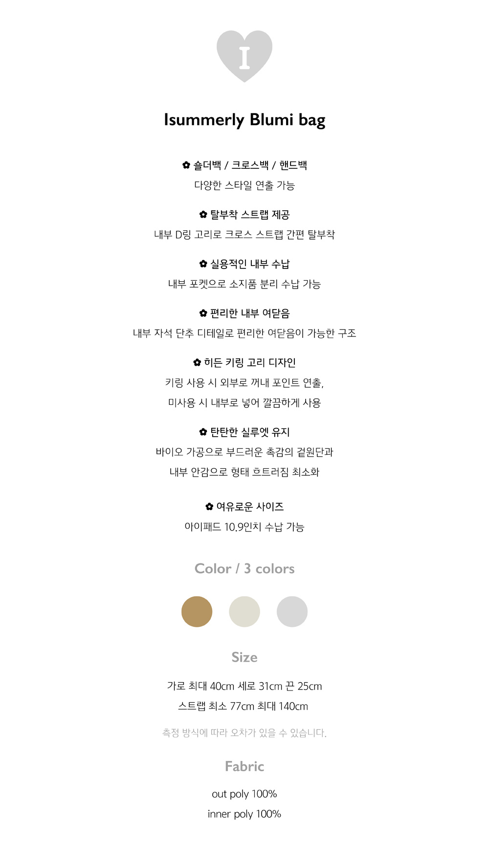 측정 방법에 따라 사이즈에 일부 오차가 있을 수 있습니다.