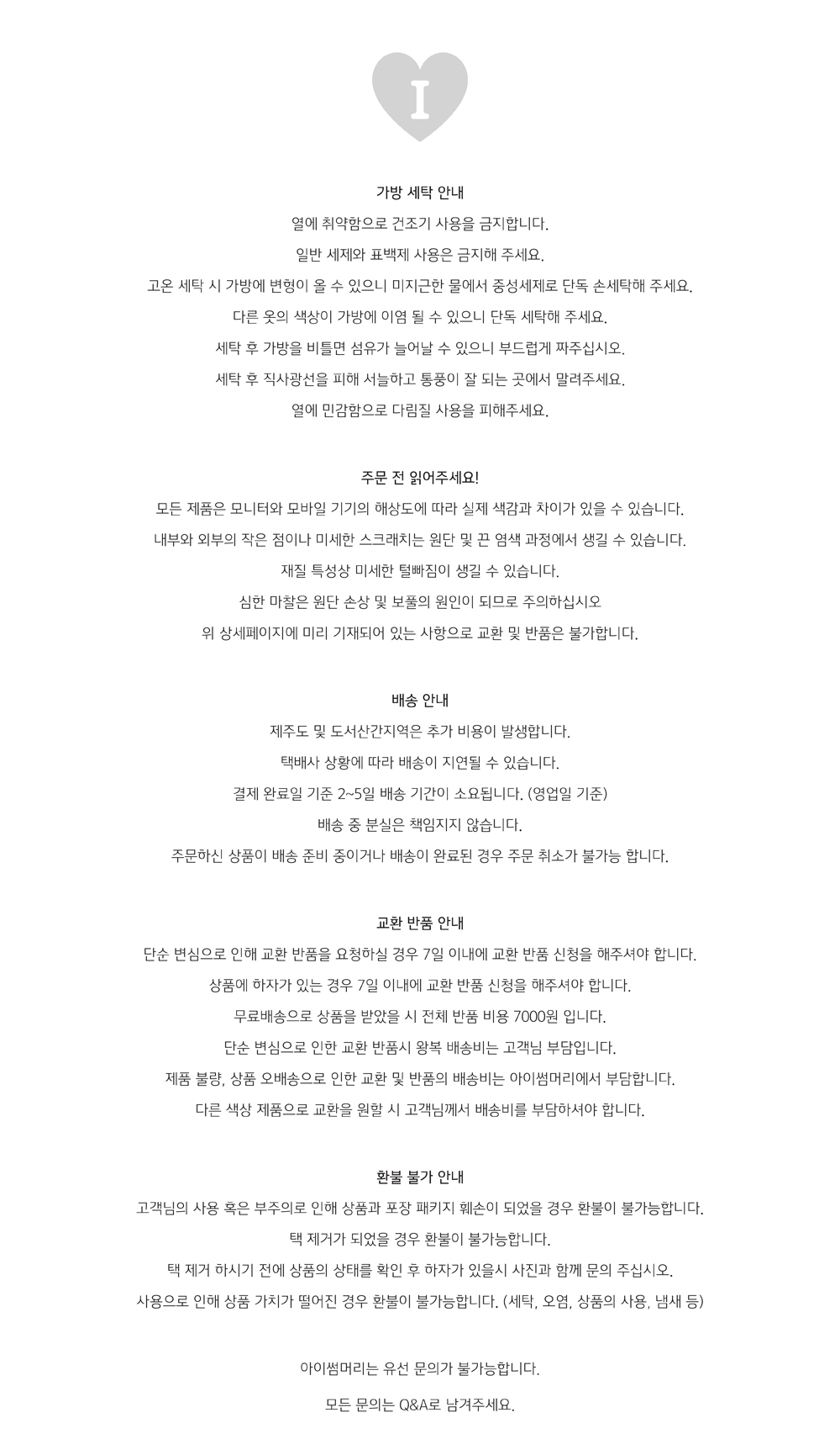 교환 및 반품 안내