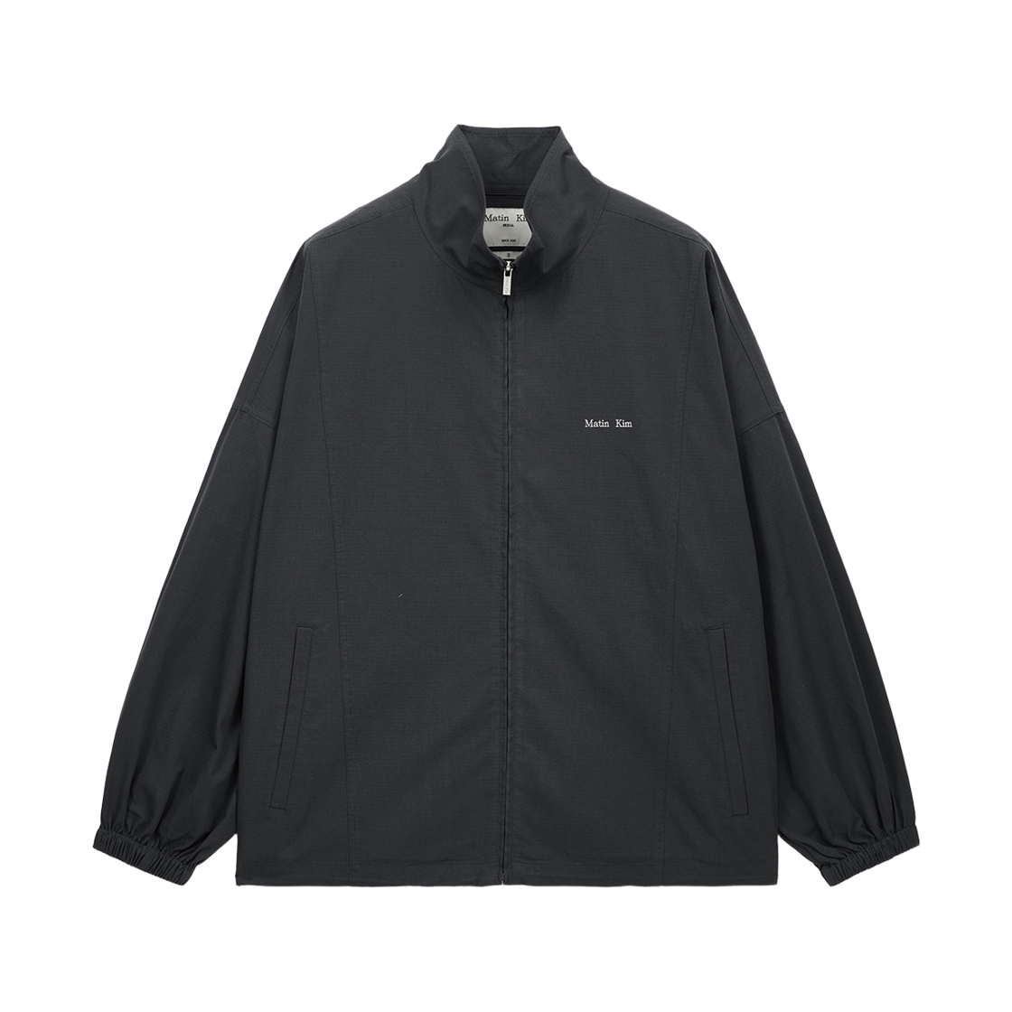 마뗑킴 백 로고 하이 넥 점퍼 차콜