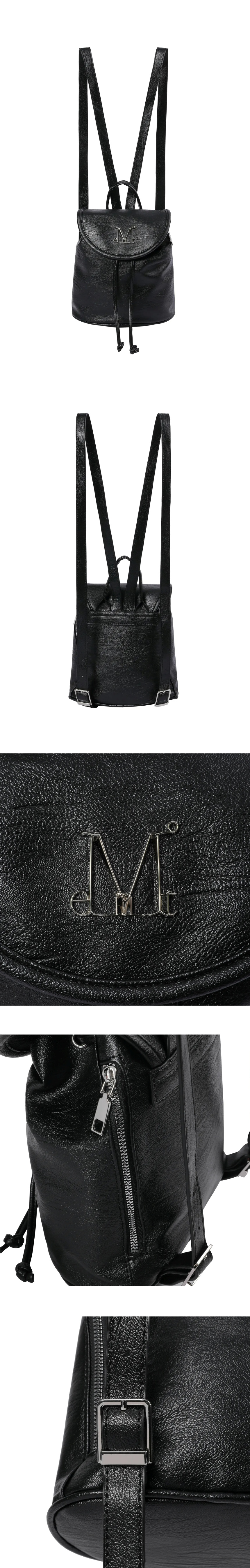 MUCENT Lunelle Metal Logo Leather Mini Backpack Unisex Black