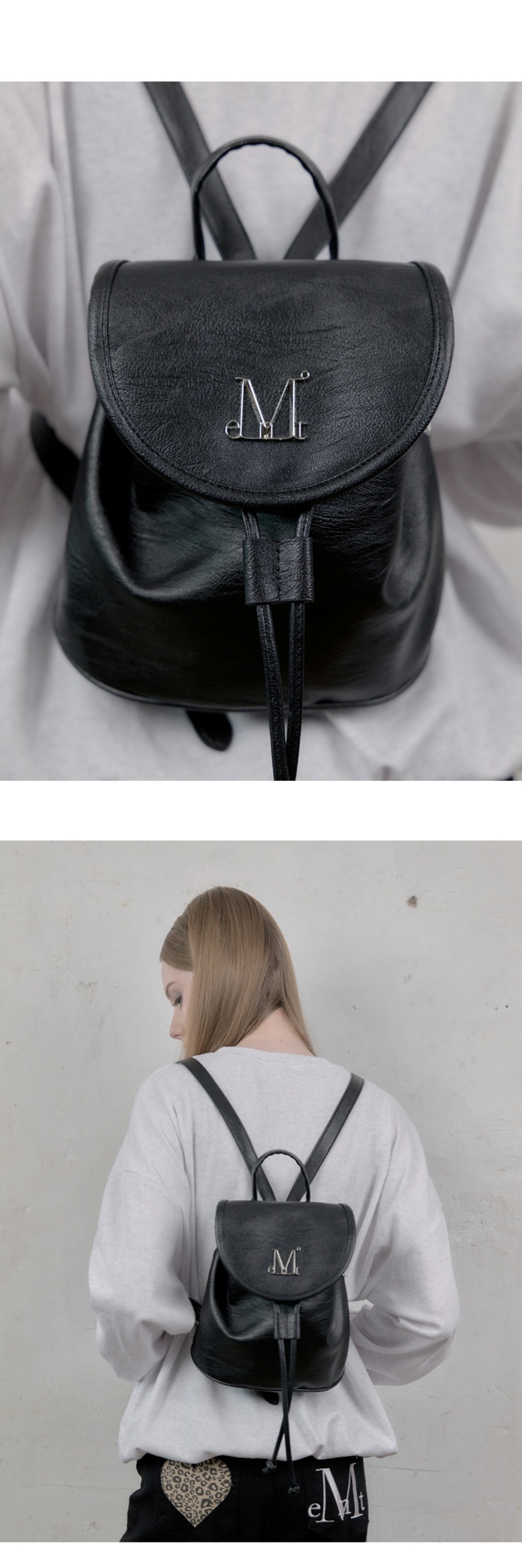 무센트 루넬 메탈 로고 레더 미니 백팩 남녀공용 블랙