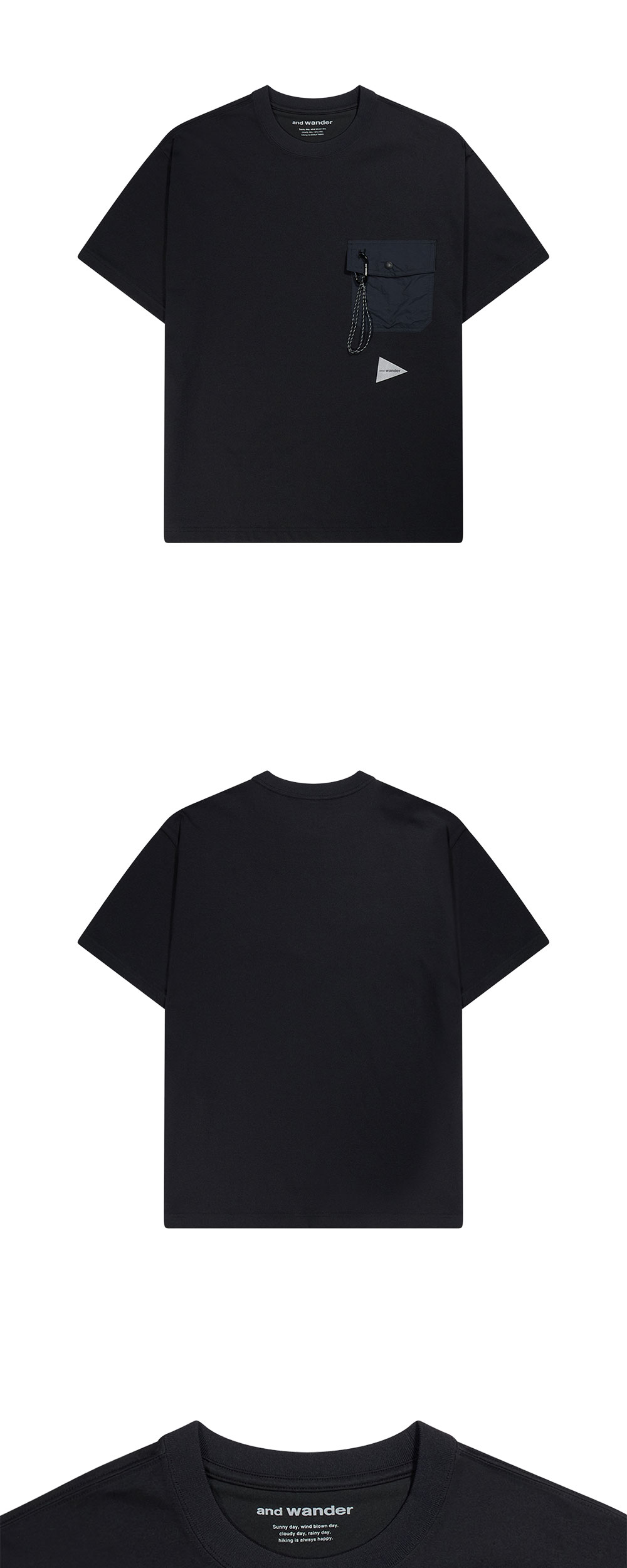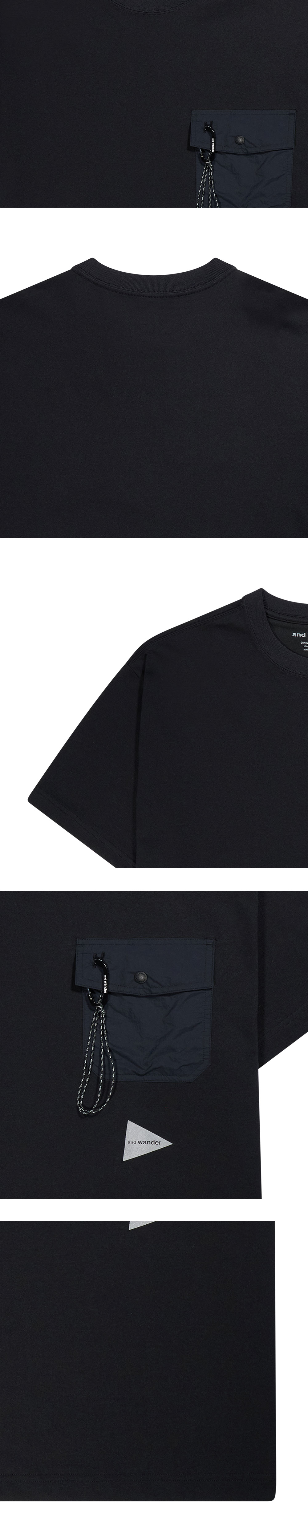 앤드 원더 080 포켓 티 블랙 입니다. - 일상 활동하기에 캐주얼 하면서도 실용적인 디자인 - 통기성이 좋은 면 혼방 소재로 제작 - 편안한 핏에 가슴 포켓에는 실용적인 고리 디자인
