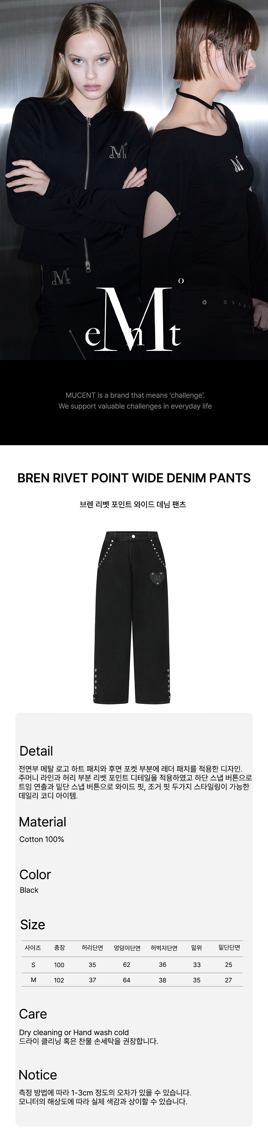 무센트 브렌 리벳 포인트 와이드 데님 팬츠 블랙