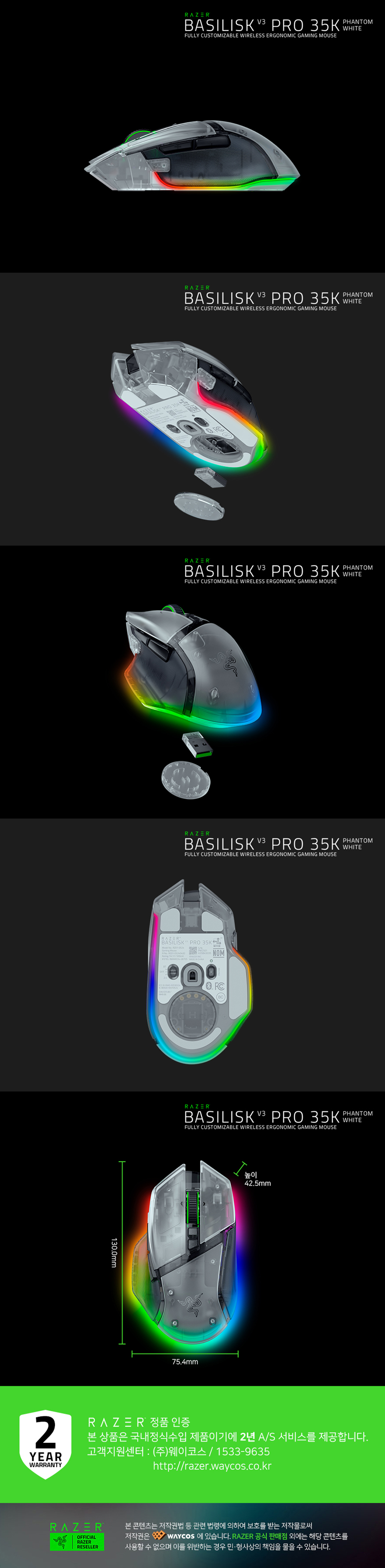 바실리스크 V3 Pro 35K 팬텀 화이트 에디션 유무선 게이밍 마우스