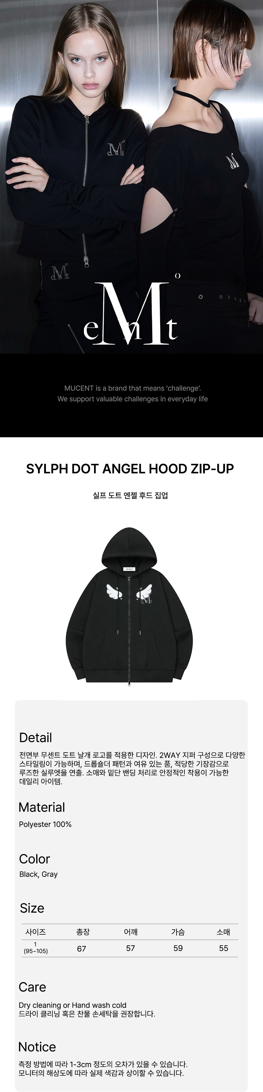MUCENT Sylph Dot Angel Hood Zip-up Unisex (2Color) Gray