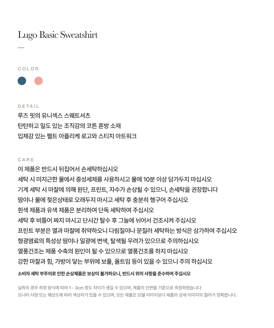 측정 방법에 따라 사이즈에 일부 오차가 있을 수 있습니다.