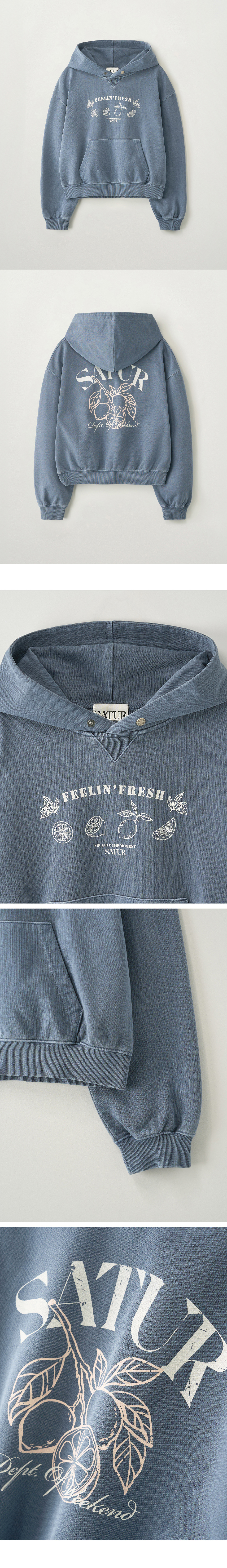 SATUR W Citron Drawing Washed Crop Hoodie Navy