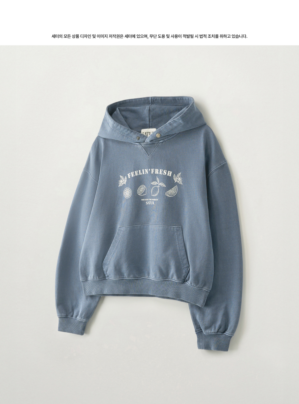 세터 우먼 시트론 드로잉 워시드 크롭 후드 티셔츠 네이비