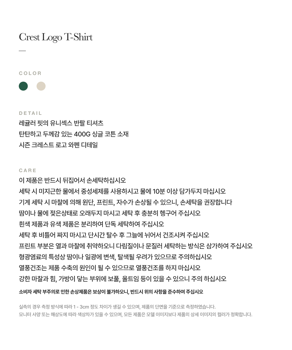 측정 방법에 따라 사이즈에 일부 오차가 있을 수 있습니다.