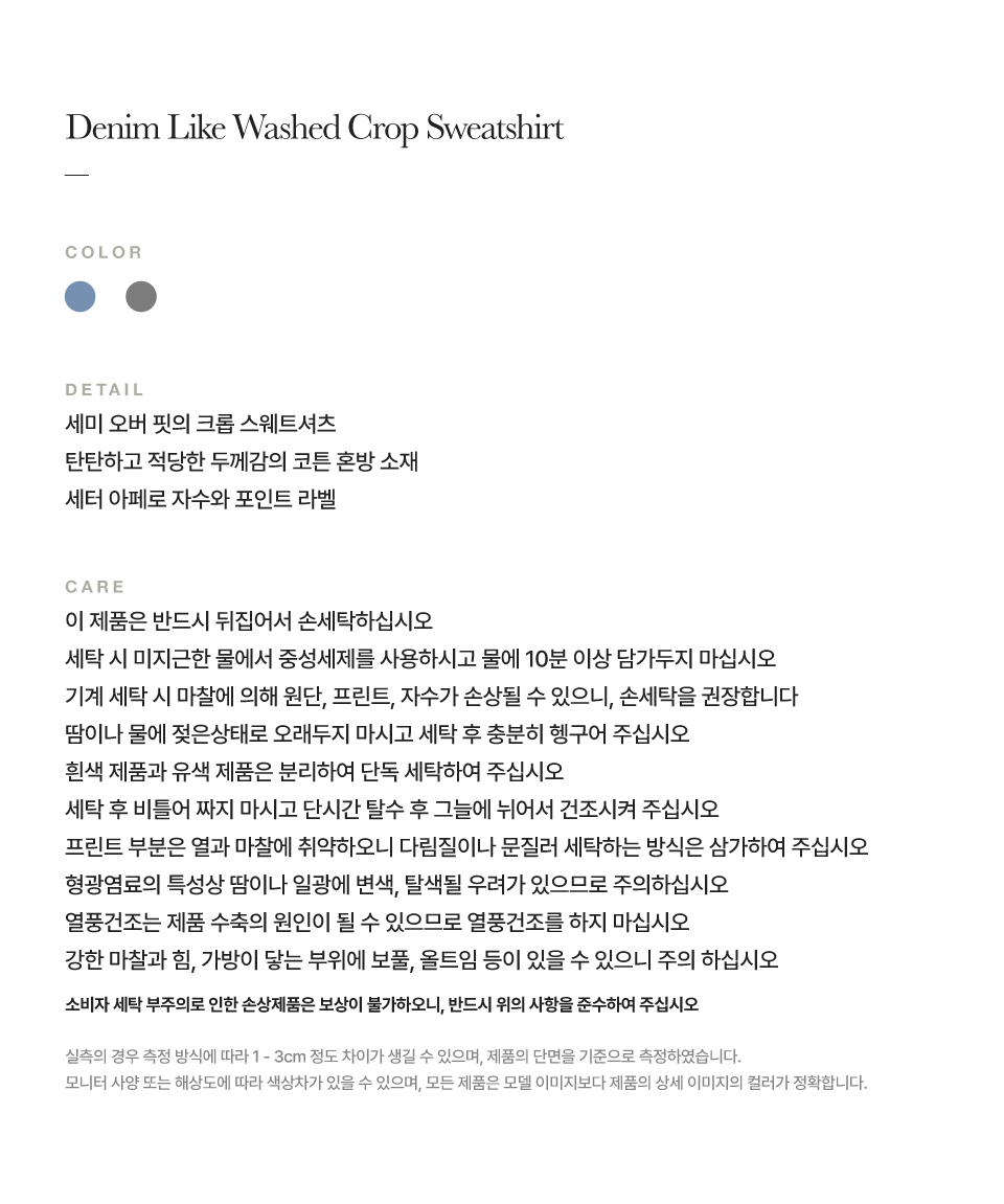 세터 우먼 데님 라이크 워시드 크롭 스웨트셔츠 블랙