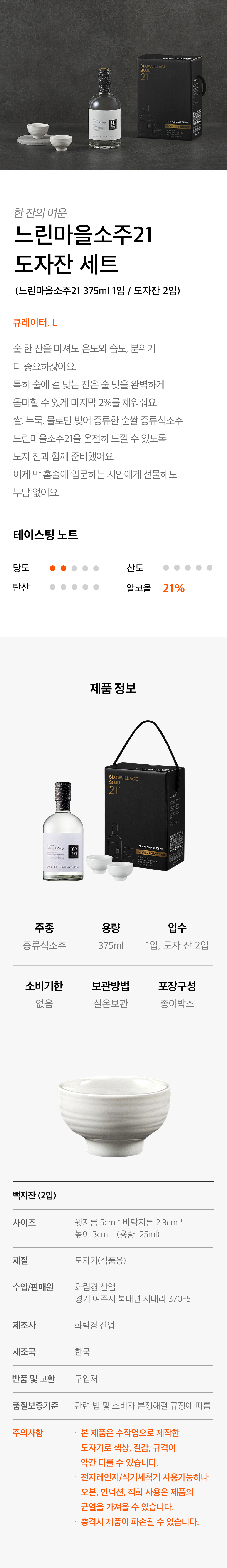 느린마을 느린마을소주21 375ml 1입 도자잔 선물세트