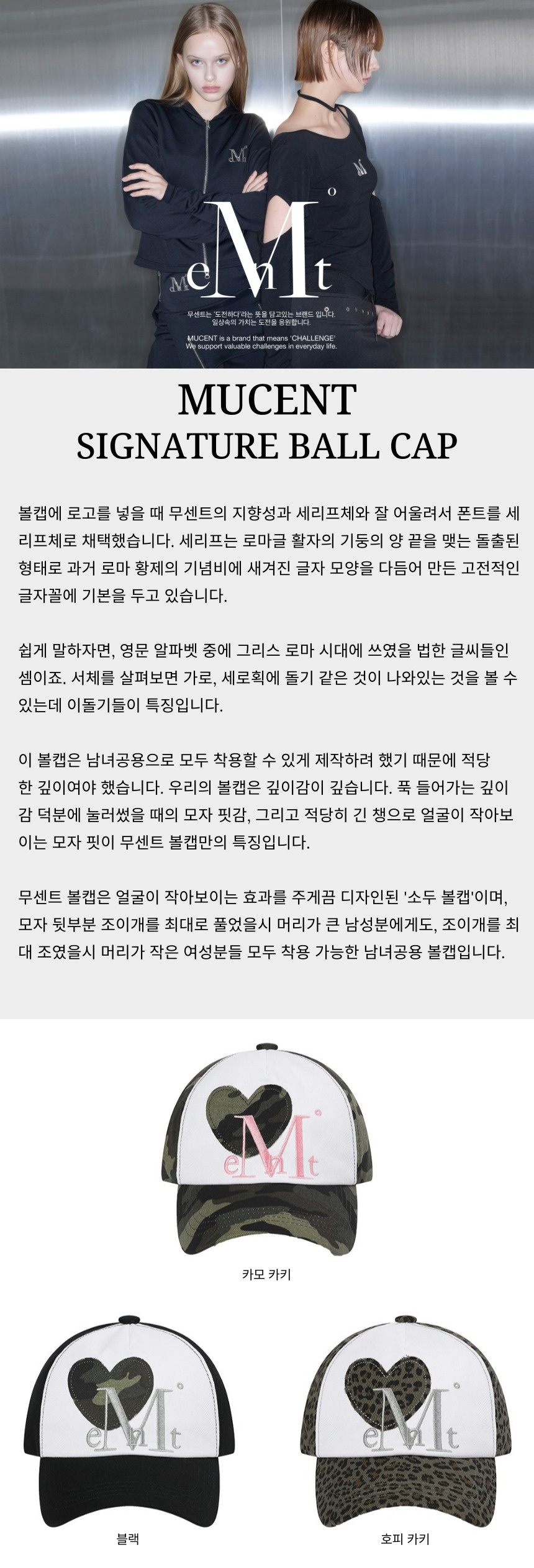 ┃Detail 볼캡에 로고를 넣을 때 무센트의 지향성과 세리프체와 잘 어울려서 폰트를 세리프체로 채택했습니다. 세리프는 로마글 활자의 기둥의 양 끝을 맺는 돌출된 형태로 과거 로마 황제의 기념비에 새겨진 글자 모양을 다듬어 만든 고전적인 글자꼴에 기본을 두고 있습니다. 이 볼캡은 남녀공용으로 모두 착용할 수 있게 제작하려 했기 때문에 적당 한 깊이여야 했습니다. 우리의 볼캡은 깊이감이 깊습니다. 푹 들어가는 깊이 감 덕분에 눌러썼을 때의 모자 핏감, 그리고 적당히 긴 챙으로 얼굴이 작아보 이는 모자 핏이 무센트 볼캡만의 특징입니다. 무센트 볼캡은 얼굴이 작아보이는 효과를 주게끔 디자인된 '소두 볼캡'이며, 모자 뒷부분 조이개를 최대로 풀었을시 머리가 큰 남성분에게도, 조이개를 초 대 조였을시 머리가 작은 여성분들 모두 착용 가능한 남녀공용 볼캡입니다. ┃Material : Cotton 100% ┃Care : Dry Cleaning ┃Made in China