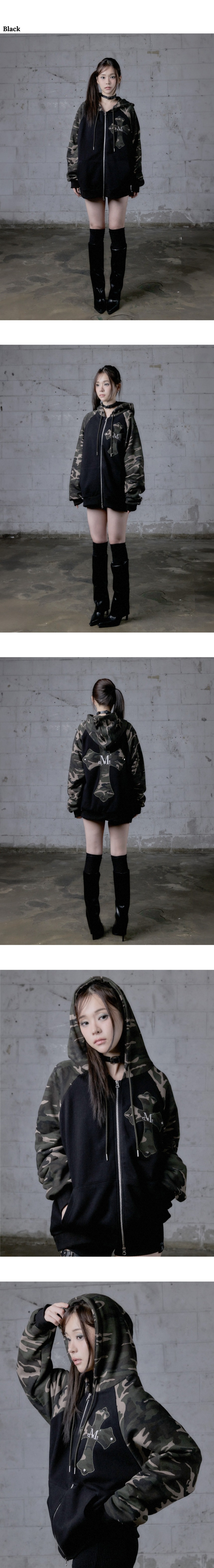 무센트 리베라 카모 크로스 배색 나그랑 후드 집업 남녀공용 (2컬러) 블랙
