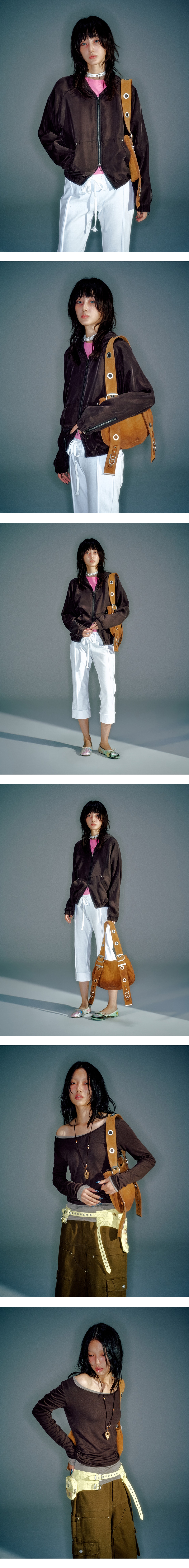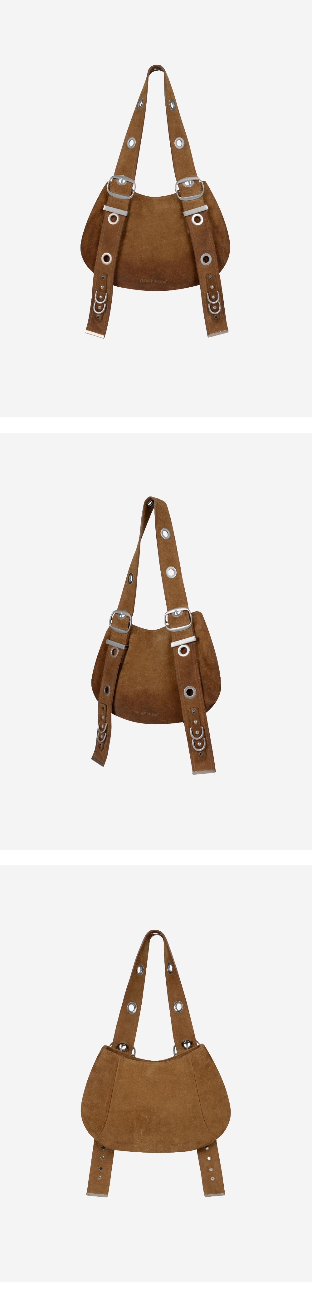 스웨이드 가죽 소재에 빈티지한 더티가공을 더해 연출 스퀘어 아치형 쉐잎의 미니 사이즈 백 숄더 기장부터 크로스 기장까지 스트랩으로 조절하여 다양한 스타일링 연출 (스트랩 길이 조절 시 스트랩 전체를 분리하지 않고 부분 이동으로 조절 할 것) * 본 제품은 한 피스씩 수작업으로 진행되는 핸드메이드 스크래치·더티 가공 제품으로, 공정 특성상 금속 장식 부분에 미세한 까짐이나 스크래치가 발생할 수 있습니다. 이는 디자인 의도에 따른 자연스러운 빈티지 무드 표현으로, 제품 불량 또는 교환·환불 사유에 해당하지 않는 점 양해 부탁드립니다. 빈티지 가공 특성에 대한 충분한 이해가 있으신 고객님에 한해 구매를 권장드립니다.