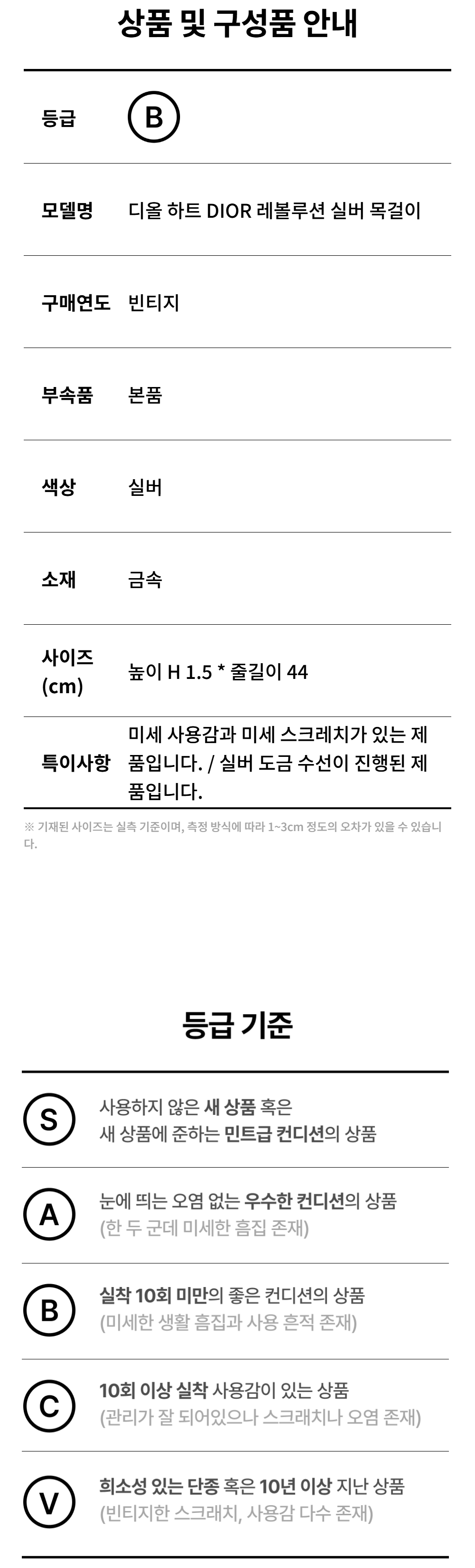 디올 하트 에르메스 레볼루션 실버 목걸이 A-B47600