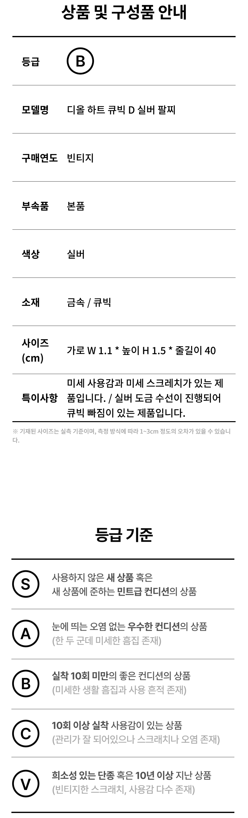디올 하트 큐빅 D 실버 팔찌 A-B47610