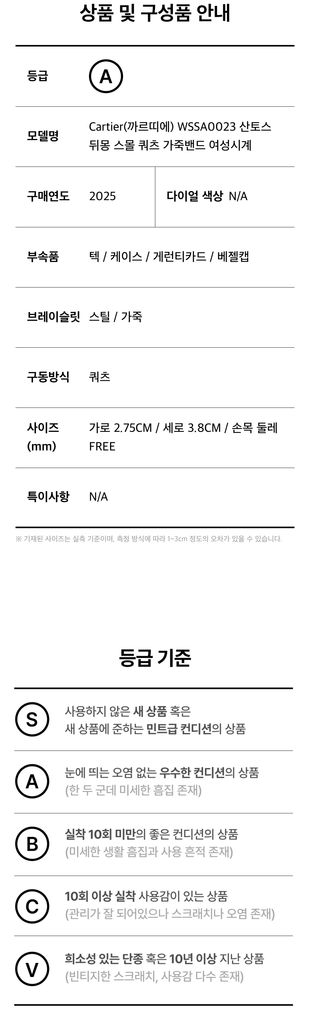 까르띠에 WSSA0023 산토스 뒤몽 스몰 쿼츠 가죽밴드 여성시계aa60375