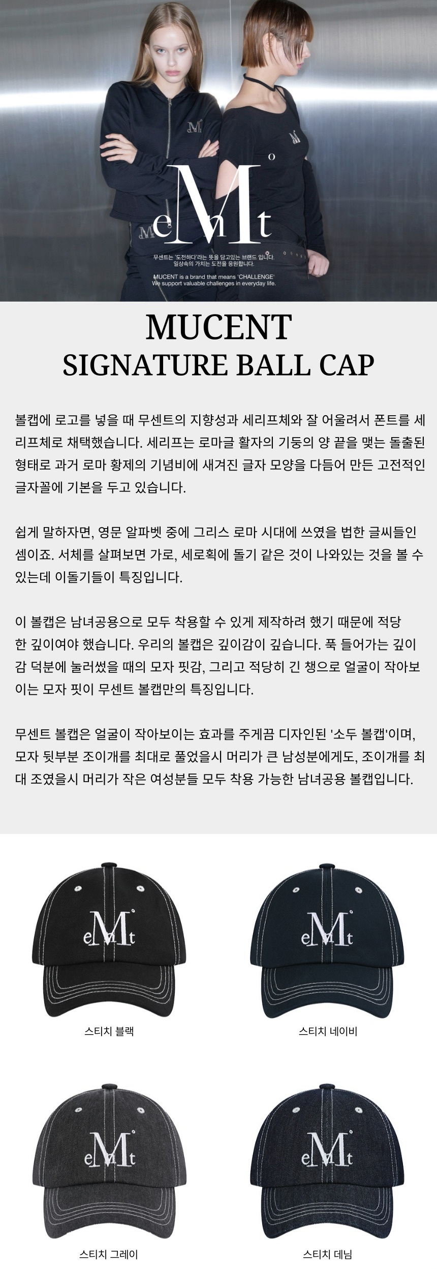 무센트 시그니처 스티치 볼캡 (4컬러) 스티치 데님