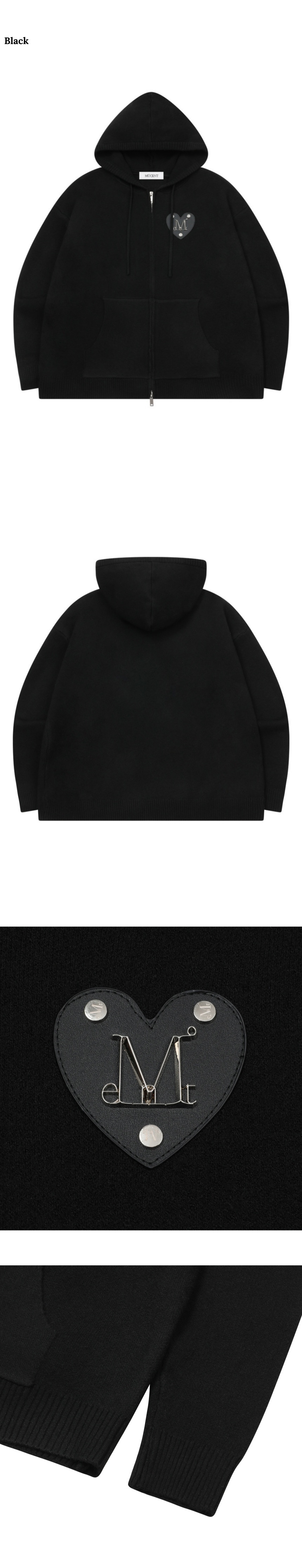 무센트 노이드 메탈 로고 하트 패치 니트 후드 집업 블랙
