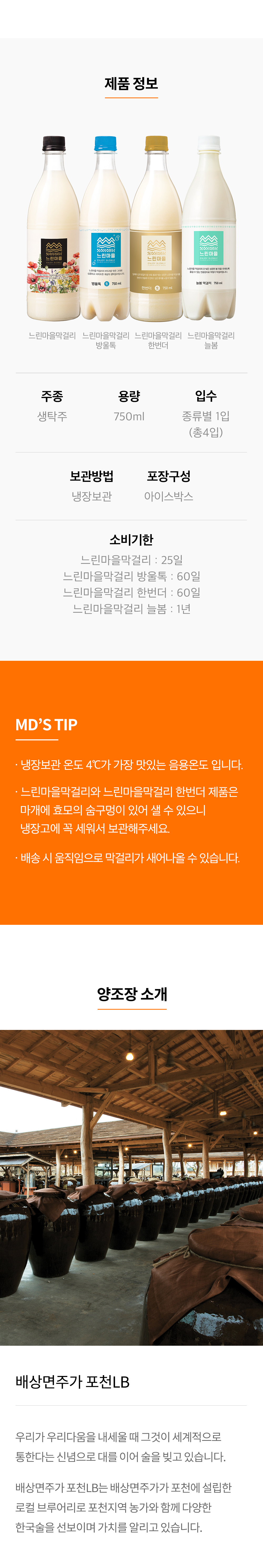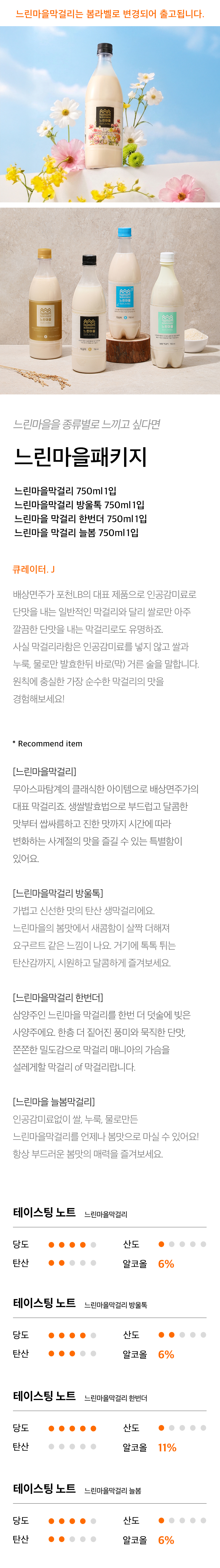 Slow village Premium Makgeolli Package Set (Four Seasons+Bubble-Tok+One More+Neoulbom) 750ml 4 Btl.