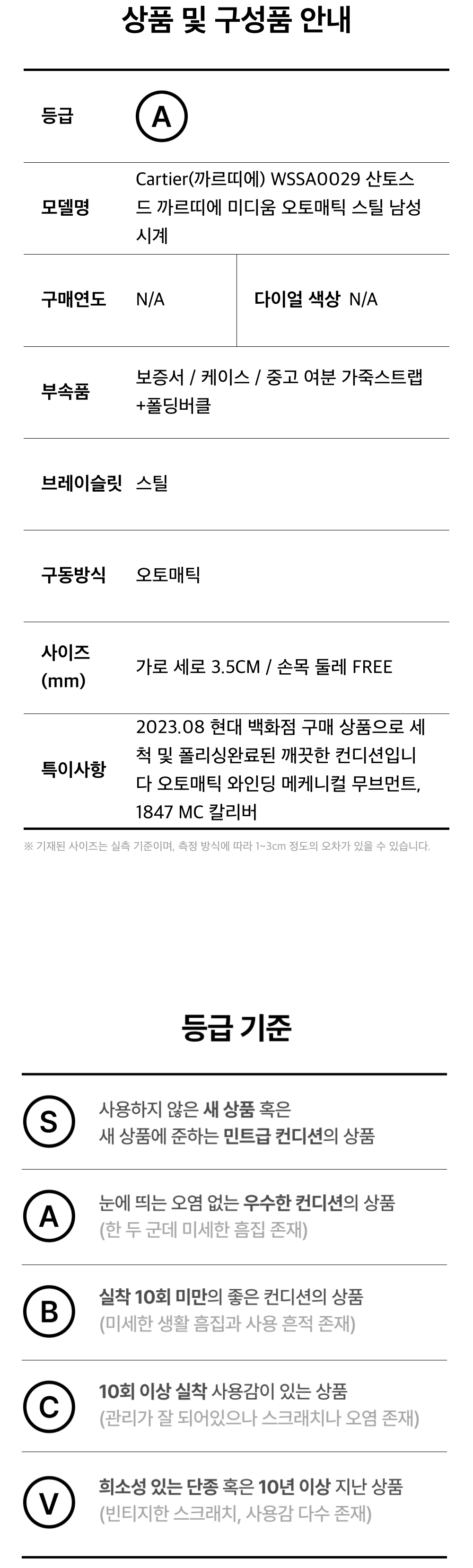 까르띠에 WSSA0029 산토스 드 까르띠에 미디움 오토매틱 스틸 남성 시계aa59197