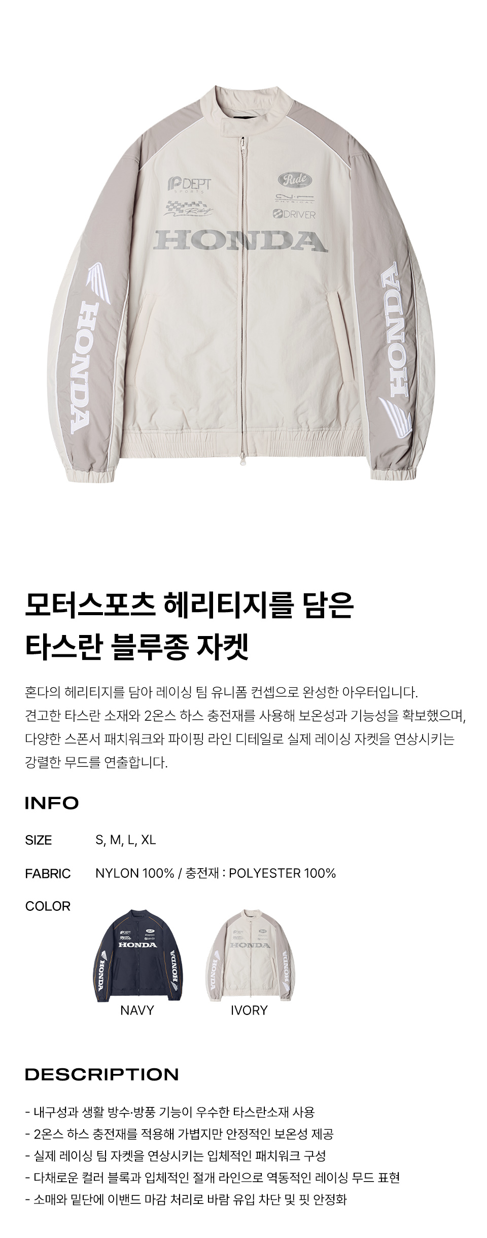 혼다 나일론 레이싱 블루종 자켓 아이보리