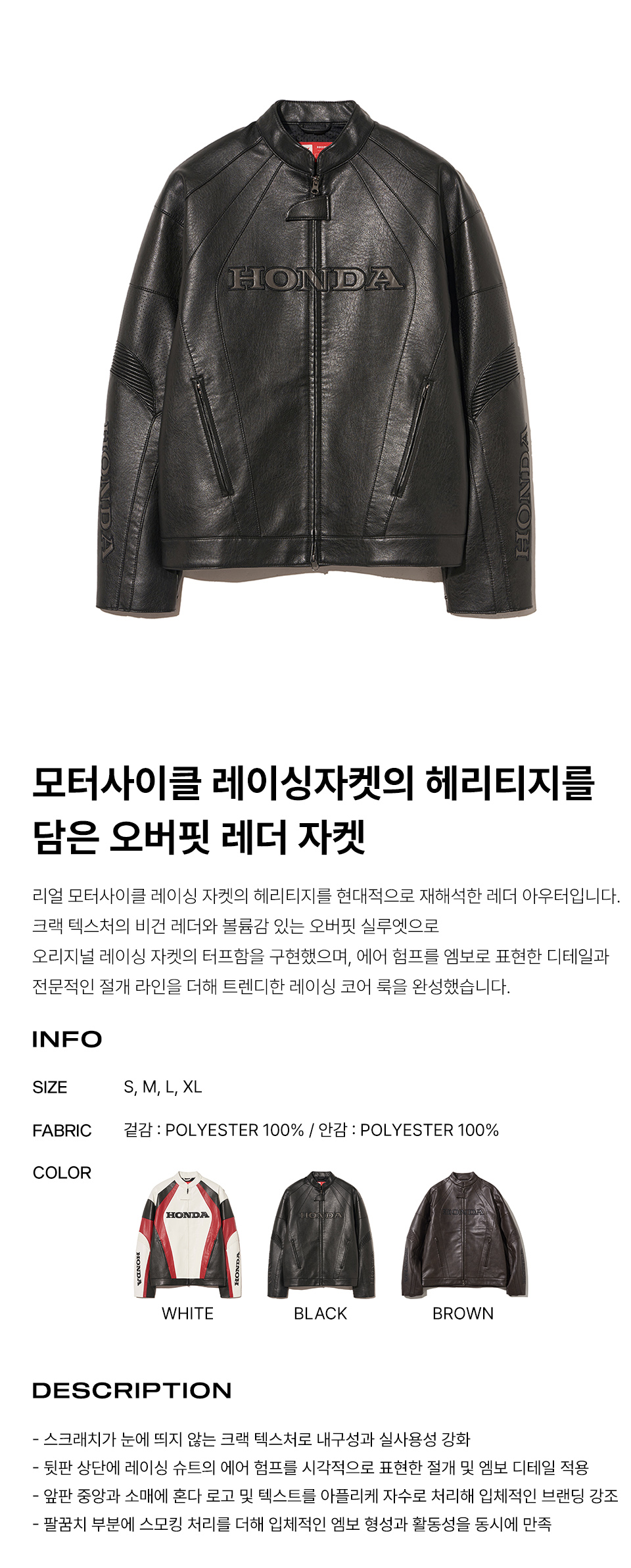 혼다 엔지니어드 레더 오리지널 모터사이클 자켓 블랙