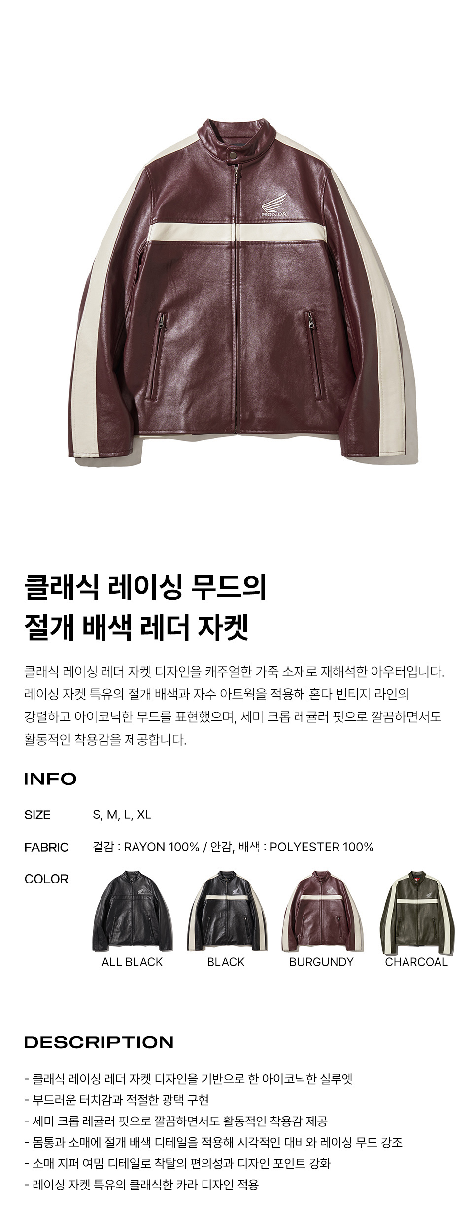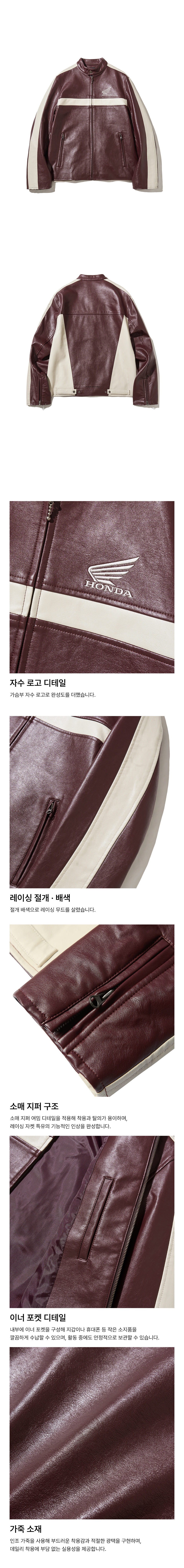 혼다 엔지니어드 레더 모터사이클 자켓 버건디