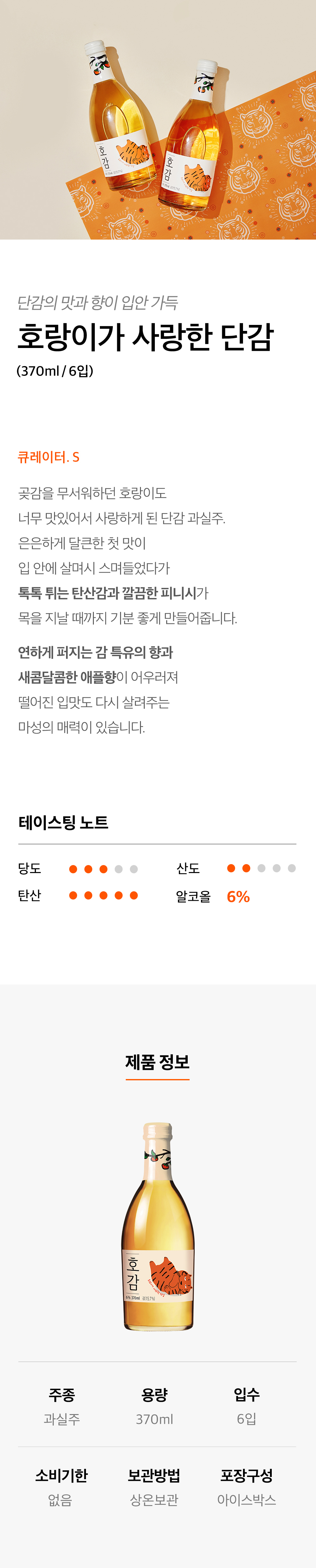 배상면주가 스파클링 과실주 호감 370ml 6입