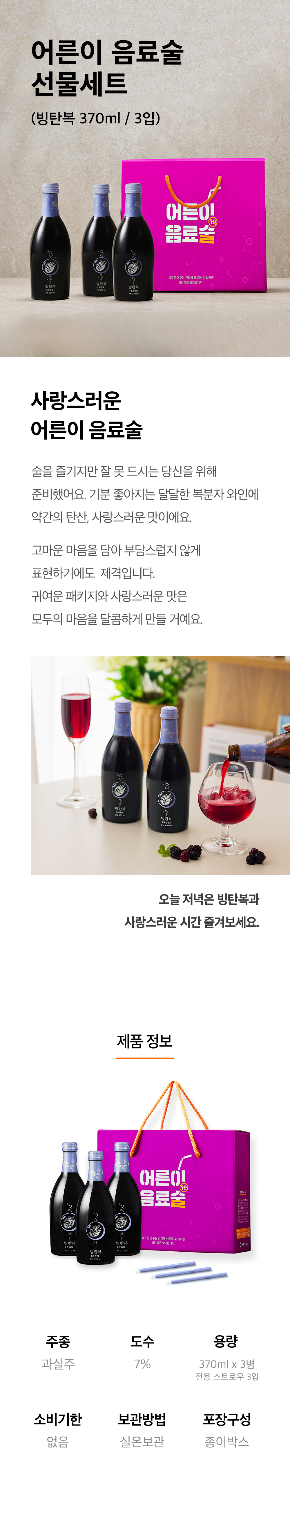 배상면주가 어른이음료술 세트 고창 복분자주 빙탄복 375ml 3입