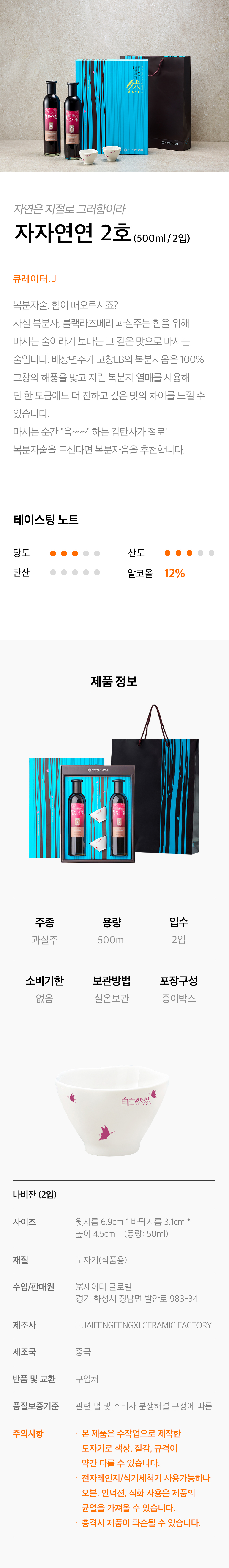 배상면주가 자자연연2호 복분자음 500ml 2병 고창 복분자 술 선물세트