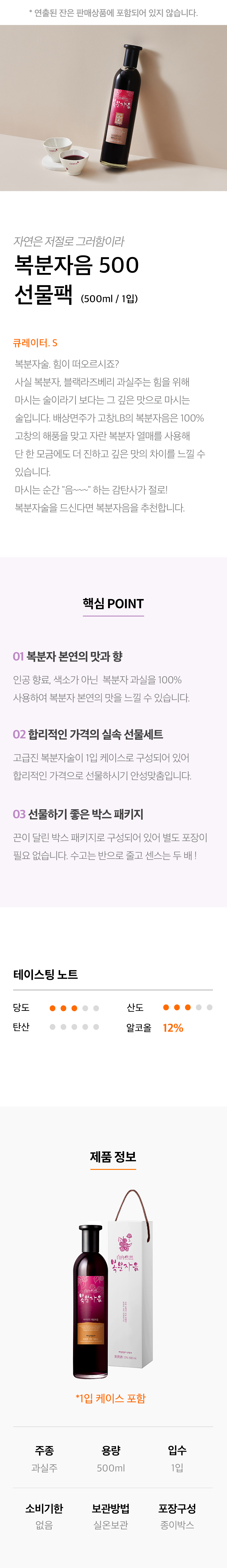배상면주가 고창 복분자주 복분자음 500ml 전용잔 전통주 술 선물세트