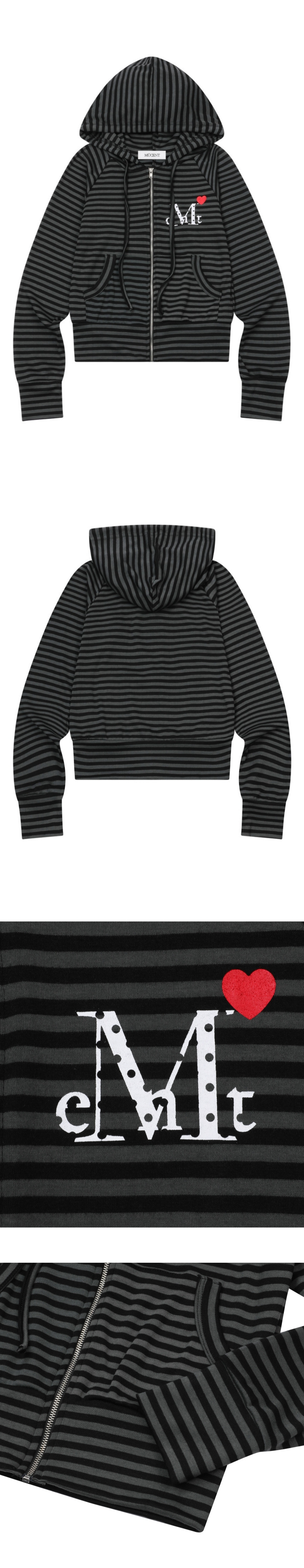 무센트 러브릿츠 미니 하트 로고 스트라이프 나그랑 후드 집업 (2컬러) 차콜 - 블랙